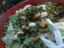 经常会一忙起来就错过了午餐的饭点,也好同样也错了公司附近那一波接一波急着解决午饭的人潮。下午1点多小店里稀稀拉拉的有着几桌人在吃饭,桌下的纸巾团可以看出前1小时内有多少来在此风卷残云过,有吃炒饭的,更多的是吃米粉。#三烧粉#是常点的一款,其实也不算特别,三种不同的烧味拼在一起,具体是那三味哈哈忘记了,记得有叉烧就对了,反正都是肉肉嘛,有肉肉吃我就很开心了。喜欢吃辣自己多加一些红红的剁椒辣子,粗粗的米粉条细滑很像平常烫火锅吃的那个土豆粉。作为日常的工作餐以速度快为主,味道不要太差就能过得去,主要功能还是果腹的。这样一份三烧粉价格11元,营业这么多年价格随着物价有所上涨,但都还是在接受范围内,开了也有几年的能存活下来证明东西还是可以吃的。…查看更多