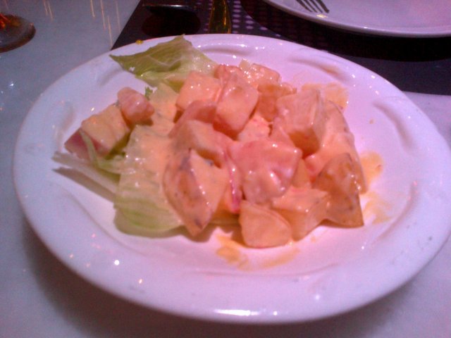 大年初一过来的,过来才发现原来这里是酒吧不过白天还是作为西餐厅,团购来的环境还不错,没几桌人,放着很舒缓的音乐,感觉不错忌廉南瓜汤,太过于希和甜,感觉很腻果蔬沙律、 凯撒沙律,很不错,新鲜的蔬果芝士焗肉酱意粉,芝士很多,肉酱也很好吃泰式酸辣鸡扒饭,还不错,好像7仔的酸辣酱,不过饭好吃9寸的BBQ披萨,底很薄,芝士很足,但是实在太多了,吃不完英式红茶,竟然是立顿的,很郁闷布丁冻不像是布丁,有点像是啫喱来的如果要求不高,偶尔过来尝尝还可以…查看更多
