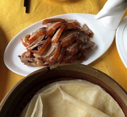 在全聚德吃的最为地道的老北京烤鸭哦,片皮鸭切成一片一片的,几乎是很薄的一片,看上去满满的一盆呢,吃饭就是用薄薄的面皮包裹着鸭肉吃,然后放上些许的大葱,涂抹上酱料,吃起来特别有滋有味,很满足。…查看更多
