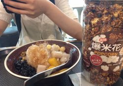 吃的鲜芋仙的芋圆4号,冰沙实在是太多了,虽然当中牛奶味也是挺浓的,但是一旦化开来之后味道就好淡好淡的,芋圆有点少呀,珍珠很好吃哦,爆米花是买来去看电影的,好大的一份,奶油味很足,超好吃,电影看完了爆米花还没吃完。…查看更多
