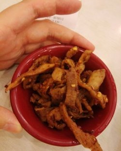 到店买了2个鸭脑壳,寻思还要买别的什么东西的时候,就听见店员一个劲推荐鱿鱼。可能是新产品,后来发现来一个顾客,店员就推荐一盘鱿鱼。最后还是只拿起鸭脑壳就走了。最近两个月我吃过三次廖记棒棒鸡的鸭脑壳,鼓楼南街的那家资历很老了,鸭脑壳又麻又辣,超级好吃,结果之后路过一家顺便买的就不行,今天再这家买的鸭脑壳也不得行,完全不麻不辣,感觉像五香味道,但是颜色确实是深色的那种麻辣色彩。吃到嘴里有点闷,脑花一直是我比较喜欢的部位,结果脑花完全没有味道,把我闷惨了,最后就只吃了一个鸭脑壳的脑花,另一个就丢了。不晓得是不是廖记的调料统一改了,最近两次在不同店购买的味道一模一样,且都不好吃。如果真的是改了的话,还是请改回来。…查看更多