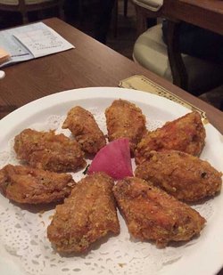 吃的下午茶,烤鸡翅很好吃,上桌的时候还是挺热乎的,外皮烤的很脆口,鸡肉十分的鲜嫩,25元6个鸡翅,性价比还是不错的。拿破仑很赞啊,一层一层的,做的非常的酥脆,巧克力棒也是我喜欢的口味,有点黑巧克力的口感,浓郁但不会黏腻。…查看更多
