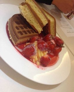 一直蛮喜欢西九巷这家店的,感觉甜品风格也蛮精致,价格也不会贵的离谱,草莓奶油松饼卖相真的超赞,非常的漂亮,松饼口感脆脆的,草莓的奶油味道很甜哦,口感很清新,奶油中还有新鲜的草莓,个头不算大,但是也不错了。…查看更多