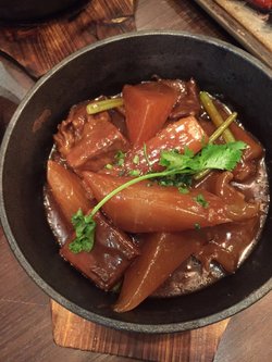 兰亭茶餐厅是和同事一起光顾的,这家店开在创意园区内,环境幽雅,服务员也很热情。秋天是吃萝卜的季节,选了萝卜炖牛腩,牛腩和萝卜都切的很大块,牛腩的味道都被萝卜吸收了,牛腩酥嫩带着萝卜的味道,非常好吃。…查看更多