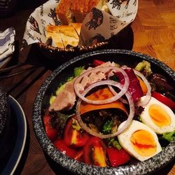 Oza Oza Bistro 这家店开在康定路上,店面不大,环境还不错。正好单位在附近培训,所以中午就这里随便吃点。它家的蔬菜色拉看着就不错,新鲜的生菜、蛋黄半熟的鸡蛋、红红的小番茄、牛油果和洋葱圈,拌了些橄榄油,口味清爽。…查看更多
