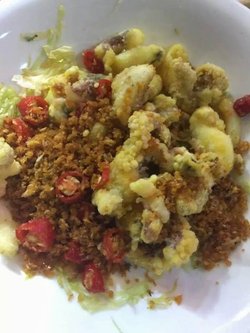 宁波海鲜这家店是家小饭店,不要看不起小饭店,往往有的小饭店的口味做的比大饭店来得好。它家的海鲜都是新鲜进货的,蒜蓉鱿鱼选用了那种新鲜的鱿鱼做成的,鱿鱼外面包了层面粉,炸的黄黄脆脆后,搭配上炸过的蒜蓉一起炒,味道非常好吃。…查看更多