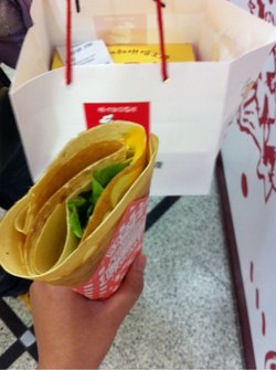 可丽饼的价格好贵的,二十几块一个,才这么一点点,吃几口就没有了!味道还可以,点了金枪鱼芝士披萨,看着他完成制作的,金枪鱼真心就放了一点点啊,还撒了点芝士、生菜,最后包好以后就看到皮和生菜,金枪鱼都没什么口感的!料多放点吧!…查看更多