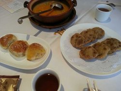 去这家店吃饭,一定要乘早,要么在十一点前到,要么就是提前预定哦,否则就要排队呢!他家的龙虾泡饭好好吃,非常的鲜美,米饭吸收了鲜美的龙虾汤汁,喝了两碗都不满足!藕饼,里面夹着肉末,很香哦~吃起来蛮脆的!!…查看更多