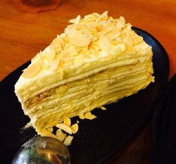 带着同事过来吃的,推荐她吃了榴莲千层蛋糕,我自己吃了原味芝士蛋糕,偶尔吃吃相对口味清淡点的芝士蛋糕也不错的,外表烘烤的有一点点焦香的味道,蛋糕特别的柔软,芝士很浓郁,再不喝水的情况下蛋糕也会自动融化哦,猫山王做蛋糕的功底还是很强大的,都好吃。…查看更多