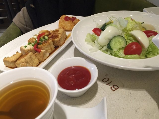 一茶一坐店子不多,还挺爱吃的,算是台式吧,其实感觉和一般的快餐式小炒店是差不多的了,关键不是价格也挺合理的嘛。红焖豆腐类似炒豆腐吧,这个很粤菜感觉的,豆腐的分量不少了,都是外层有腐皮的那种豆腐,炒的还有点小辣,油挺多,但是汁儿不多,下饭还行。肉末西生菜最喜欢了,这个还是汤汤水水的做法,菜汁不少的,生菜都是一片片包住的了,肉末特别的多,不过味道都是挺清淡的,勾芡不错。…查看更多