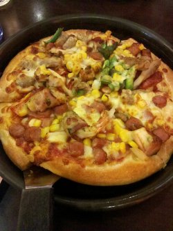 必胜客 必胜客 2013-05-30朋友生日请我地来食噶,下午差唔多5点去到,唔使等位,不过就岩岩好冇咗下午茶套餐,可惜了~3个女仔,就点咗培根大虾加一个好多肉噶2合1pizza,普通铁盘装,本来想加芝心噶,不过朋友就话唔系好食得惯芝士咯~都要等好耐下,所以都系差唔多上pizza之后再点其他嘢噶,我地都唔系好大食,就加咗个肉酱意粉同一份小食就够啦!pizza系切成6块噶,其实芝士都比较多噶啦,不过培根就好干身咯,虾就几好,肉都系好多噶,而且有青椒同粟米粒噶,饼底都好好味!不过就稍微油腻咗D咯~食完pizza其实都已经饱啦,加点噶意粉都系三个人分来食噶,番茄酱落得好多,不过D肉噶口感就好奇怪咯~有D败笔~埋单92蚊,用咗学生卡打8折噶,都算好抵!…查看更多以上食評乃用戶個人意見 , 並不代表OpenRice之觀點。讚好分享必胜客 必胜客 https://s.openrice.com/KtbT0m0yEC2W0檢舉 張貼 評分5味道5環境5服務5衛生4抵食推介美食2合1pizzapizza