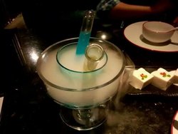 豪厨这家店之前电视节目内有介绍过,正好周末和朋友聚会,所想来这里尝试一下。这家店开在福州路上金陵海欣大厦内,这里交通非常便利。当天他家的试管饮料给了我们不小的惊喜,蓝色的是薄荷口味,入口清甜种带有薄荷的清凉,试管放在铺满干冰的玻璃容易内,非常有意境。…查看更多