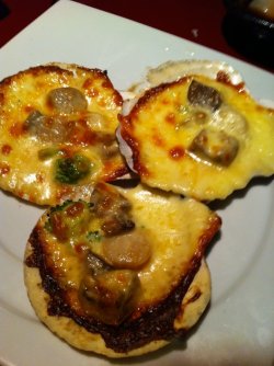 同事离职请吃饭选择了这家台北小统一牛排馆在九江路靠近广西北路口地铁2号线出来也方便我们则是直接步行过去门口有迎宾要先爬几节楼梯然后转坐电梯上去话说那个电梯真心小只能坐3个人出来就看到令人赞的幽蓝灯光情调很浓啊整个餐厅属于幽暗系不过装修很精致还有个钢琴摆着上去3楼好像是洗手间随后入座团购餐 不纠结 菜一一上来头盘是水果沙拉梨 哈密瓜 小番茄 黄瓜 沙拉很甜弥补了哈密瓜的无味副菜 蒜香面包开始觉得应该有黄油配味更浓吃了口后发现已经入味了而且很脆啊边缘烤的焦焦的大爱汤品 罗宋汤很浓稠的味道就是跟面包后的间隔有点远一片面包吃完了才多悠悠的上后面仅剩的一片配汤喝 赞没几口就解决了主菜选的铁板菲力牛排8分熟很厚实的一块牛扒可以选择黑胡椒酱或者蘑菇酱浇上后滋拉滋啦的冒烟服务员会很细心的提醒你把手机翻过去餐盘很特别 牛状 呼应餐厅名么浇了黑胡椒酱的牛排很是入味 口味很重口感不错 满嫩的 8分熟的还是蛮能清楚的看到血丝旁边有西兰花和地力配菜同事吃前以为地力是仙贝想多了吧你饮品选的是咖啡没啥特别的 有点苦 而且来不及喝甜品现在是统一的冰激凌球刚上的时候冻的很硬稍微化一下 草莓味 随便吃话说吃完冰激凌再喝咖啡觉得更苦了总结:团购88.8,价格比较给力。服务员很勤快,基本空了就给你收盘了。环境真心不错,而且中午去的人不多,很安静。很适合约个会啥的。…查看更多