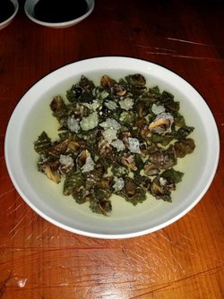 千岛湖人家这家店开在田林宾馆附近,店面小小的,但是生意很好。他家的海鲜都是当天进货的,都非常新鲜。辣螺平时看到的比较少,所以这里看见了就点来尝尝。辣螺在他的尾部有一小段是绿色的肉是辣的,螺肉口感劲道有点辣辣的,非常特别。…查看更多