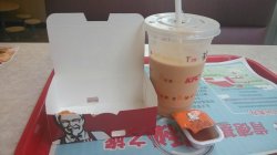 吃的9元下午茶,逛到这,又不是很饿,实在外面天气太热,进来吹空调。有上校鸡块还有珍珠奶茶,最爱吃的就是鸡块了,沾上那个甜辣酱我觉得很好吃,外面一点点焦皮的感觉,奶茶是冰的就当解渴,没有奶茶店的味道浓,差不多这个味道也就蛮好了。…查看更多