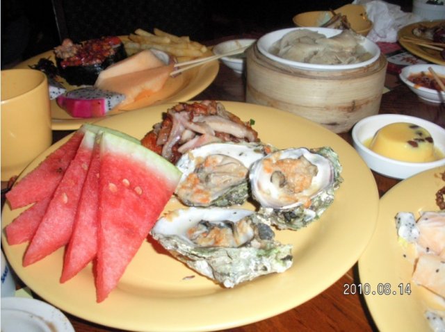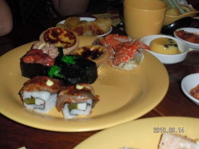去过两次咯~第一次去果时有8.5折..折后79蚊..第二次去就四人同行一人免费..其余就8折..中抵!!哈哈..一去到就摞咗好多寿司食啦!D寿司都几好食啊!!不过D紫菜就软咗D啦~之后去见到D蛋糕好靓啊!又摞咗好多~之后就后悔啦..因为食咗几件蛋糕之后就好滞啦~~蠢咗..但喺两次都系因为D蛋糕太吸引啦~所以都摞咗好多~第二次去果时见到有炸三文鱼头~好好食啊!但喺我见过一次之后就冇见过啦..可能系一晚剩出一次吧..我对生蚝就嘛嘛哋啦..果度D鱼蛋都好好食啊!辣辣哋几好味~哈哈~中有好多煎炸嘢~培根肠.烤鱿鱼.烤鸡肉串等等~好多啊~~中有类似麻辣烫嘅..有肉丸..菜之类嘅嘢..自己煮..不过我对依D就冇乜兴趣啦~哈~~不过我两次都冇见到传说中嘅焦糖布丁啊~~好想试下啊~~果度中有中餐嘅菜..又有包之类嘅点心..蟹都有啊~~哈哈~总体都唔错啦!!不过拣位就最好拣靠近摞嘢嘅地方啦..但喺我之前去都唔喺好多人~~唔知喺米冇乜生意啦宜家...~~~…Read More