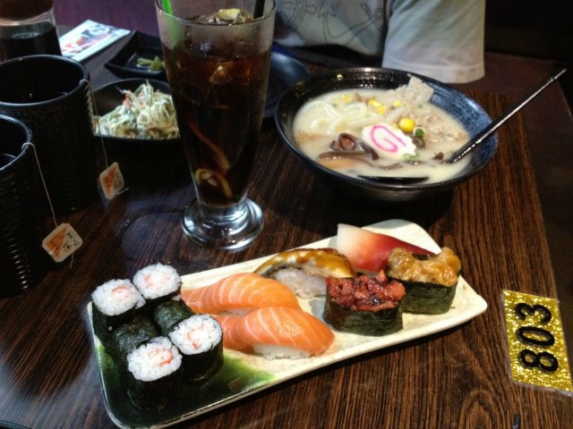 喺北京路青宫入边有间羽寿司,今日就黎试试先,11点半左右黎无,基本上无咩人,点咗个鱼生饭套餐加个寿司套餐。寿司套餐有8旧寿司+乌冬(小)+冻柠茶,8旧寿司有北极贝寿司,三文鱼寿司,鳗鱼寿司,螺肉军舰等,味道都唔错,乌冬个汤底唔错,不过旧肉就一般。鱼生饭套餐有鱼生饭+冻柠乐,第一次食鱼生饭感觉用料真喺多,有三文鱼,三文鱼腩,希灵鱼,金枪鱼,一羹几旧肉,食晒D饭仲有唔少肉剩,值得推荐!…Read More