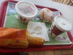 以前没有来过肯德基吃早餐,今天没什么吃的就过来了,点了安心油条加木耳鸡肉粥,鸡扒汉堡加纯豆浆,一共12元。油条个头不大,汉堡更是和女生手掌那么点小,也就是饭量小,两个人点了这些再加了个小面包,要是赶上能吃的,一个人得吃三套。粥的味道倒是不错,麻麻说她要自做己试试。…查看更多