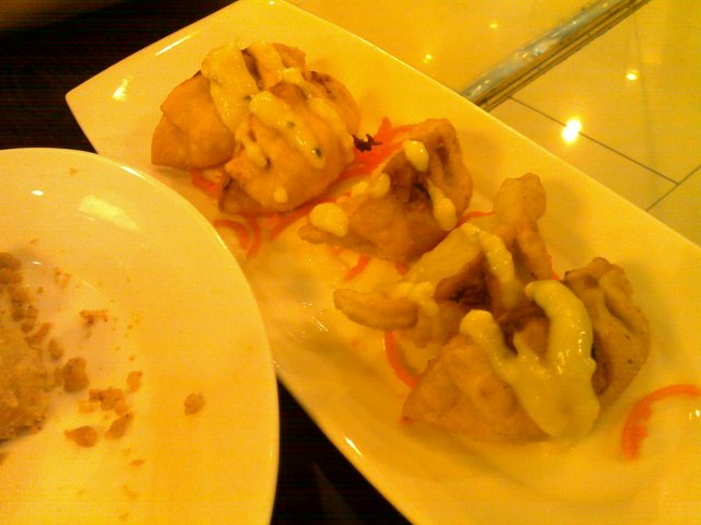 团过这里的团购餐,40多元的双人套餐有一份蟹子炒饭一份芝士肉酱焗意粉半打鸡肉串烧/牛肉串烧2选1香煎多春鱼半打手拍青瓜一份海鲜南瓜忌廉汤两份主食的分量很大,炒饭和意粉味道不功不过,可以接受选了鸡肉串半打很好吃,烤得很香,鲜嫩多汁多春鱼也比较一般,稍微有点腥,煎得太干了手拍青瓜挺新鲜的,味道不错南瓜忌廉汤很香浓很粘稠,味道很好喝总体来说挺实惠的,是性价比很高的一餐…查看更多