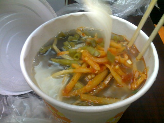 之前在五月花那边上班,于是经常买这家的打包价钱在附近算是比较人性化的,毕竟北京路东西都不便宜最喜欢吃的是牛腩桂林米粉配多酸笋酸豆角,以及蛋炒粗米粉,价钱都是6-7元左右汤米粉配料挺多的,味道比较重,笋和豆角都很爽口,牛腩也比较入味炒米粉味道也很不错,他家的酱挺好吃的,配上蛋口感比较丰富现在路过那边都会不时买来吃,经济实惠味道也不错…查看更多