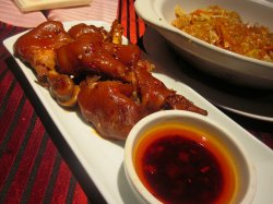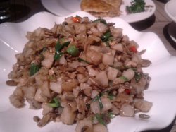不时会和好友去她家吃饭,主要是觉得中西餐厅环境好,服务也不错,清净,可以边吃边聊。高山娃娃菜比较素,味道不错,但是特别烫,吃到后面觉得油稍微放多了点,有些腻。蟹黄粉丝虽然蟹黄不多,但味道还是出来了,味道比较好的一道菜。这道蟹爪就真心想让人吐糟。我们吃了都觉得就是用面粉包裹着蟹爪炸了一下,既没味道,又没特色,不推荐。猪脚是我们每次必点的一道菜,这道没什么特别之处,说不上难吃,但也没留下什么印象,口味一般。说到环境,因为我们要的是包厢,里面有电脑可以上网,沙发挺舒服,服务员的态度也很好,最重要是我们饿了,这的上菜速度够快。…查看更多