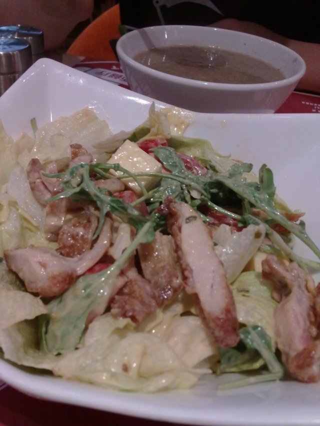 一开始来这,试的是意粉,意粉比较湿身,个人吃开的都是比较干身的那种,所以对这里的不太感冒。朋友喜欢这的炸鸡,个人感觉太干了,不过很喜欢这的鸡肉沙拉,分量足,而且鸡肉很香的说。 第二次想说尝试些别的,便点了牛肉汉堡,上桌看样子还行吧,旁边配些薯条,味道还不错 ,但当我咬了第一口汉堡后,便爱上了它,厚厚的一层牛肉,加上芝士让人欲罢不能,还有肉汁留出,看着便想大口大口的解决了它,对于肉食动物的我来说,简直是找到了我的茶了。…查看更多
