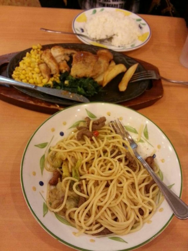 上星期和朋友到萨莉亚吃午饭,这里排队等位的人真多阿。很喜欢到萨莉亚食饭,这里的东西都不贵,而且味道不算差。装修一般般吧,比较卫生。萨莉亚的扒类都不贵,而且份量很大,基本上吃一个扒已经很饱。意粉的话味道也不错,不过就是上菜的时候已经不热了,口感一般般。推荐吞拿鱼沙律,很大的一碟,而且都很新鲜。…查看更多