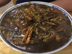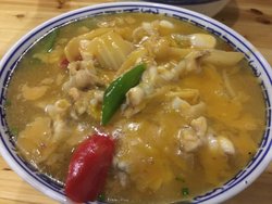 连着两天吃牛蛙面也是醉了,正好有个比较!环境:还算不错,店面挺干净,而且有二楼,桌椅比较多,吃得舒服。服务:无功无过点单:《三胖泡菜牛蛙面》30元三胖,好玩的名字,说是新品。试过后,发现里面的泡菜好好吃呀,有一点点的辣度,牛蛙的肉厚实,味道和哈灵的比起来淡了不少,哈灵的鲜味更重,不过这家的也不差。《独当一面-猪肝鸡丁大肠》30元lg说猪肝和大肠都好吃,只是鸡丁普通了写。面条是考拉不太喜欢的那种不细不粗的,口感一般吧。《炸猪排》10元考拉好不犹豫得说这是考拉在上海吃到可以排头三得炸猪排,极香,外面裹粉不厚,但炸得松脆,不得不赞一个,绝对惊艳!不错的一家面店。…查看更多