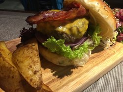 周边餐厅都被拔得差不多了,每次小伙伴们问吃啥的时候那个纠结啊!这家绝对是漏网之鱼,不捕对不起乡亲父老啊~环境:考拉喜欢的小资风格,不过总觉得和一般的小资风格略有不同,可能是太空旷的原因,也可能是顶太高的原因,感觉自己是在仓库里吃饭,还在不算难受,吃得开心最重要。服务:服务不错,都是有礼貌的孩子。点单:《安格斯牛肉汉堡》48元看整体价位是要比外面那些老外开的小资馆子要便宜,因为他们家的量不算小,我们女生吃下去绝对杠杠得。牛肉汉堡不差,牛肉饼应该只有七分熟,外深内红,牛肉肉质也不错,挺鲜嫩,比想象中48元能买到的汉堡要好,里面的洋葱生菜和培根,另配的两块煎土豆,直接把我们干倒了。《德国咸猪肘》58元肥瘦相间,做前把猪肘卷起,端上来的猪肘是圆形块状,好嫩,好好吃,完全不油腻。这道菜最经典的还不是猪肘,里面的土豆泥也是几道菜中土豆做得最好吃的一款。《法国鸭胸》58元上面浇了橙汁酱,鸭胸是烟熏的,吃口很嫩,蝎子吃不惯烟熏的鸭肉,考拉倒是还好,不讨厌也不那么爱。《维也纳猪扒》48元本以为维也纳猪扒那么高大上的名字,出来的至少也应该是块煎猪排,没想到的是上来是块炸猪排,而且淡而无味,一定要沾着类似于色拉酱的东西吃,不灵。《渔夫蛤蜊浓汤》10元基本上偏向于蘑菇汤,没多少蛤蜊的味道,当然就10元也不能对人家抱太大的希望。《青豆浓汤配西班牙腊肠》10元这道汤倒是不错,青豆泥煮成的汤还带着丝辣味,上面放着几片腊肠,10元的性价比算高了。《华尔道夫沙拉配苹果》10元就是一般的蔬菜色拉加了两块苹果。还是有可取之处的,就是生意淡了些。…查看更多