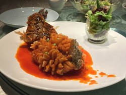 又是老大选的一家高大上的餐厅,真心是不错。环境:老大最喜欢的就是206包房,每次订位都指定要这间,因为大大的玻璃窗能观到最美的江景和江上的游轮,老大的确是会享受的人 服务:一个房间有三个服务生候着,一个服务生长驻,服务很周到,的确是星级的服务。点单:《松鼠桂鱼》258元他们家的松鼠桂鱼应该是考拉在上海吃过最好吃的松鼠桂鱼了,甜酸度刚刚好,关键赞在炸的火候,从来没有吃过炸得这么到位的松鼠桂鱼,外面脆脆的但又不会过硬,里面的鱼肉很嫩,新鲜带丝鱼肉的鲜甜。外形更是漂亮!《茶艺虾仁》288元茶艺虾仁是他们家的特色,一大盆虾仁旁边放着一高壶的龙井茶,最好玩的是出茶的方式,把杯子放着壶下面,茶水就自动出来了,放置茶的地方有一个小孔,因磁铁的关系茶水自动出,茶也很棒。龙井虾仁是河虾,虾仁Q弹,只是有点硬硬的口感。《枣泥拉糕》软糯,上面的松子好香,但是考拉觉得吃口有点偏苦。《松茸净素包》这个净素包太赞了,包子皮白嫩,里面的菜馅油足,松茸好多,好香!《和牛温泉蛋》温泉蛋无论从卖相到口感都是一流,和牛不全熟,很嫩,肉质不错。《海蜇头》很有嚼头的海蜇头。不错的店,推荐给大家。…查看更多