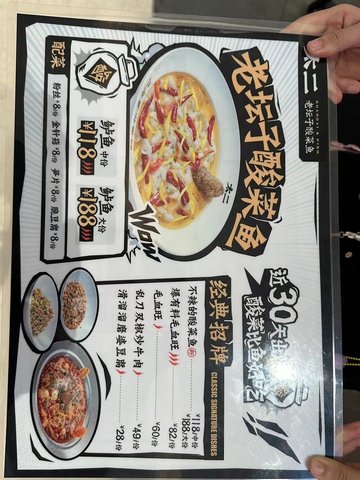 老壇子酸菜魚 / 沒骨頭的雞爪 / 停不下來小酥肉 / 喜翻翻砂紅糖冰粉 / 芥未蝦仁球 / 蛋酥軟糍粑