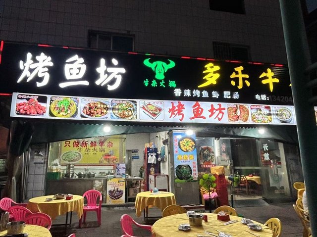 烤魚坊多樂牛香牛雜大鍋 (置業街) (中山) 網址: https://s.openrice.com/KtbSE00BVs600 地址: 中山小欖鎮小欖其他置業街120号鋪 電話: +86 13420448756