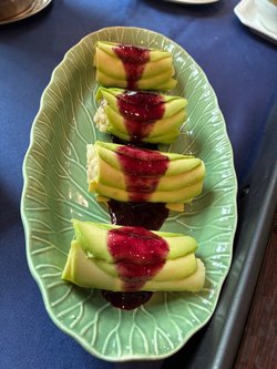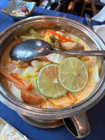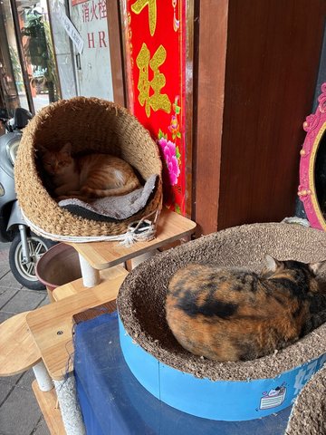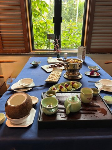這回和朋友踩點「素囍」,還沒進門就被門口的畫面戳中——藤蔓拱門下的貓窩裡,一隻橘白貓懶懶睜眼,旁邊三花貓蜷成毛球睡覺,充滿貓咪的懶散氣息🌿🐱暖黃燈光配深藍花地毯,墨綠沙發與金色小推車把質感拉滿,坐進去就忍不住放鬆下來。當天點的菜每道都踩在喜好上:• 原只椰子炖雪燕湯(72.6元):整顆椰子當容器太有儀式感!雪燕滑嫩掛著清甜椰香,喝一口連喉嚨都潤了,是會想打包的程度~• 素喜冬陰功(68元):酸辣夠味又帶濃郁椰奶香,裡頭蔬菜脆嫩,連平時怕冬蔭功的朋友都扒了兩碗!• 黑椒素扒(58元):口感紮實彈牙,黑椒醬香氣裹滿每一口,完全吃不出是素食,偽肉控必點!• 牛油果卷(半份)(42元):牛油果綿密裹著清爽內餡,淋上酸甜果醬,解膩又開胃~• 芝士薯蓉薄餅(20元):薄餅烤得邊緣微脆,內裡薯蓉混著芝士香,鹹香不膩,當小食剛剛好!連附的大廳餐位小食,擺了新鮮火龍果和花生,細節滿分。兩個人吃這桌(加上服務費總共291.4元),飽足又舒適——門口貓咪療癒,環境像在度假,菜色把素食做得精緻又夠味…查看更多