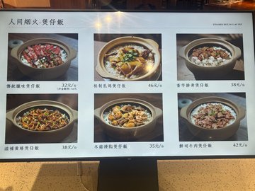 豬潤水浸枸杞葉 / 紅蔥頭啫走地雞 / 黑椒啫牛仔骨 / 鼓汁排骨煲仔飯 / 黑椒醬啫脆生腸 / 啫啫豆角茄子