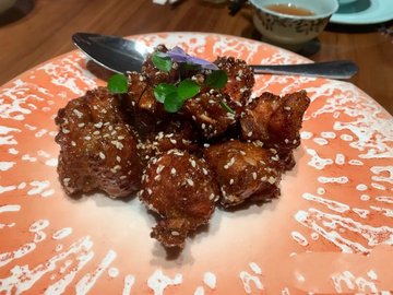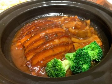 話梅 / 銷魂鵝掌翼 / 芋兒肥腸雞 / 黑松露五頭鮑魚燜紅燒肉 / 青椒燒生態甲魚 / 茶香焗大桂蝦