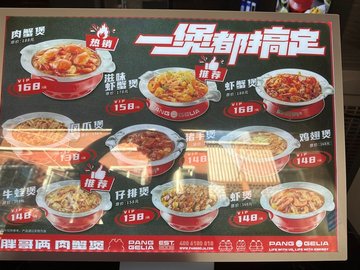 招牌肉蟹煲 / 蝦煲 / 雞爪煲 / 小酥肉 / 雞翅煲 / 牛蛙煲
