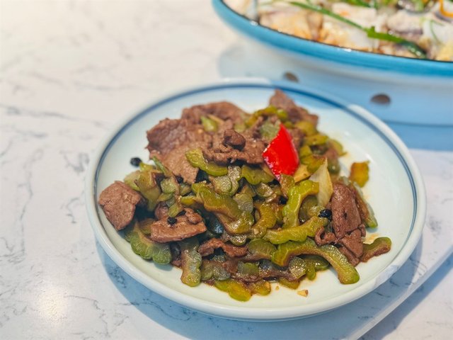 3.杏鲍菇和牛肉切成丁,蒜香炒制,蒜香味浓郁,和食材结合的非常好,好吃!