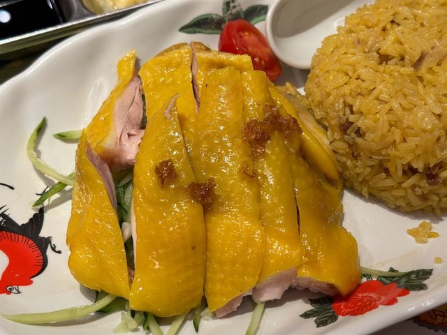 🐔海南鸡饭:鸡肉去骨,鸡皮金黄滑弹,肉质细嫩不柴。鸡肉量不大,品质也有提升空间。黄瓜丝垫底,清新解腻,点缀了小番茄。蘸料味道满意,有甜酱油、姜蓉、蒜蓉辣椒酱、香茅酱四款,搭配丰富。鸡油饭很香,但不够油润顺口。前后来吃过两次,海南鸡饭和鸡腿饭都有尝过。鸡腿肉加10元,其实吃着也没太大的差别。想吃鸡腿肉最好早点去,晚上七点多到店,鸡腿饭已经售罄。肉骨茶,一个人吃点的小份。里面有一坨排骨,用的猪软骨,肉香。汤底香料味平衡得很好,热气腾腾,回甘暖胃,喝着很舒服。东西还是好吃,量不够实在,价位稍微偏高。