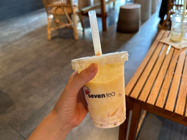 柒茶是珠海本土奶茶品牌,在附近想找个地方坐一坐。这家店重装后,今年我还是第一次光顾。