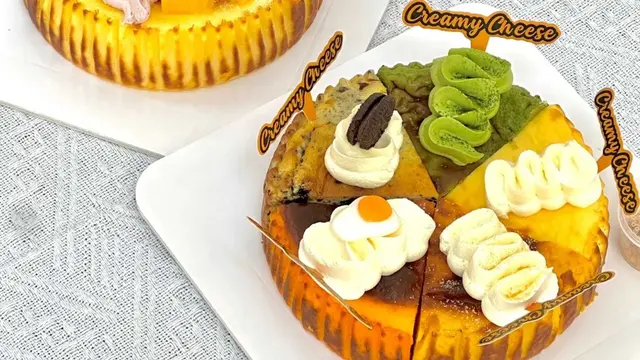任選5份巴斯克芝士蛋糕切件(不可重複選),可以拼成6寸生日蛋糕。